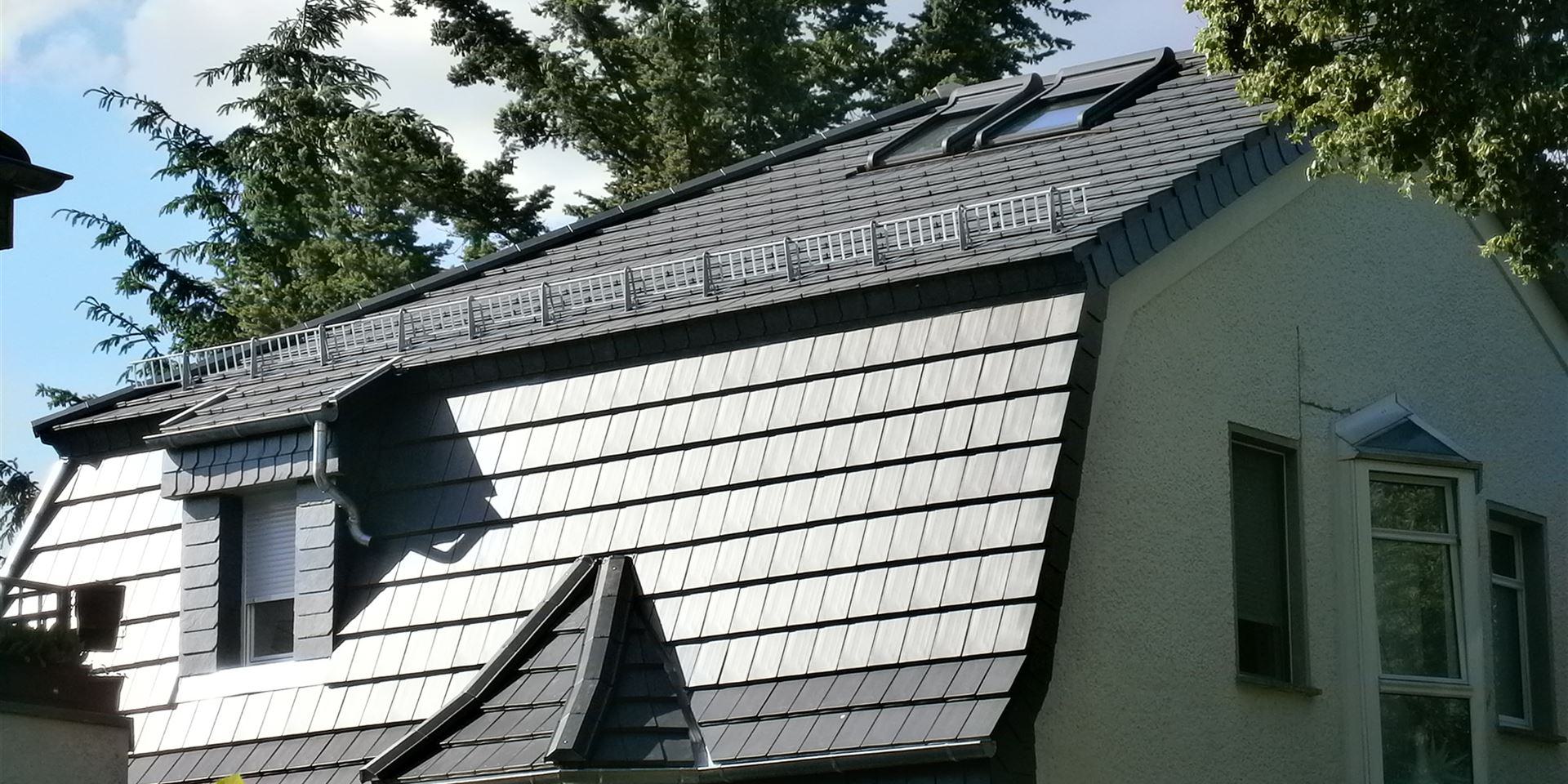 Moderne Technik oder ehrwürdiges Handwerk? Erst die Kombination liefert beste Ergebnisse. Uns ist handwerkliches Geschick genauso wichtig wie der Einsatz aktueller Werkzeuge und neuster Verfahren. Dazu bilden wir uns regelmäßig fort. Ihr Vorteil: Sie erhalten von uns bewährte Arbeit in höchster Qualität. Moderne Werkstoffe und leistungsfähige Photovoltaik-Anlagen sorgen unter anderem dafür, dass Ihre Heizkosten und Stromkosten sinken, das Haus vor Extremwetter besser geschützt ist und optisch wertiger aussieht.